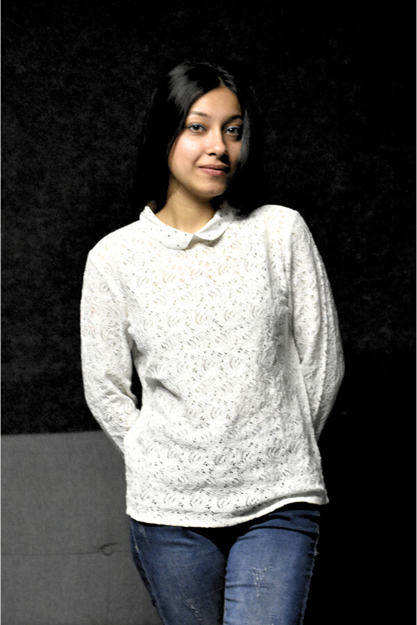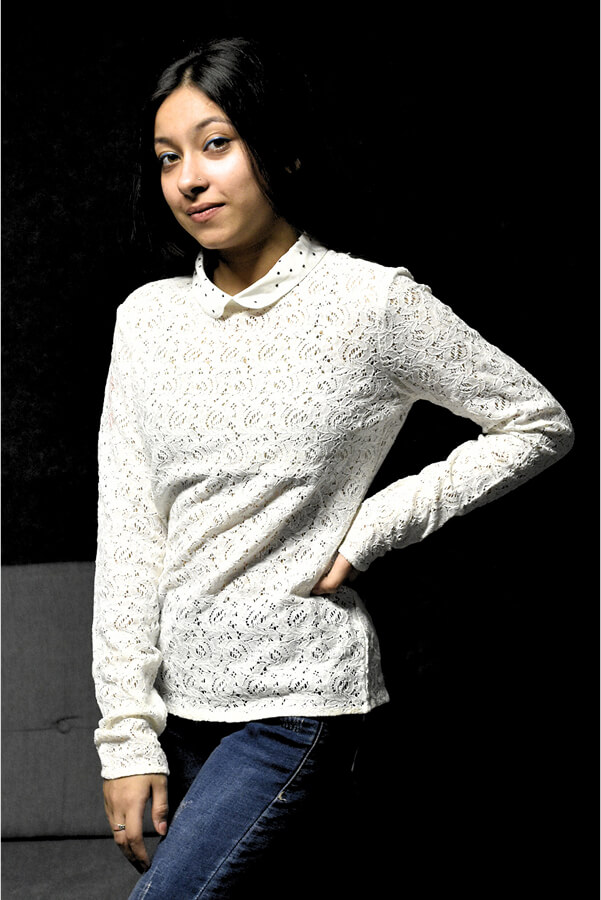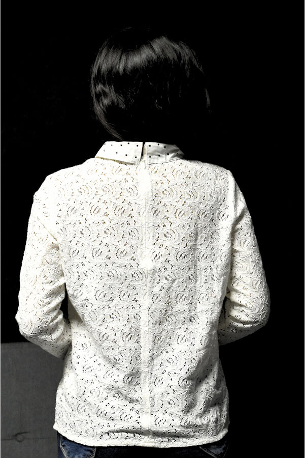 Elegant Lace Top with Polka Dot Collar