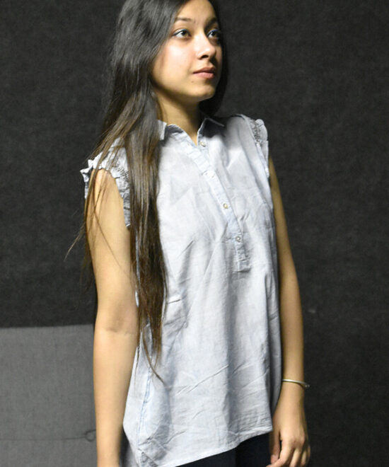 Sleeveless Ruffle Button Top